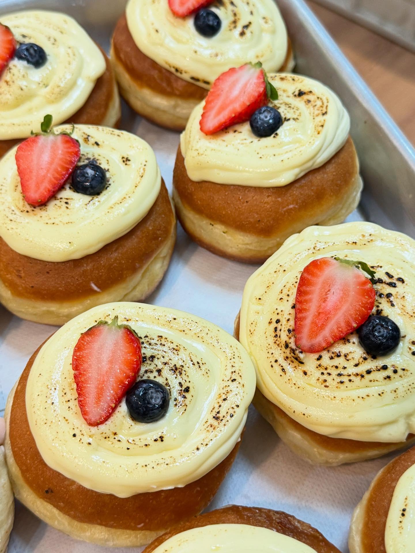 Phủ bên trên là lớp kem phô mai béo ngậy được đốt nhẹ tạo vân caramel cháy đẹp mắt, tăng độ thơm và chiều sâu hương vị.